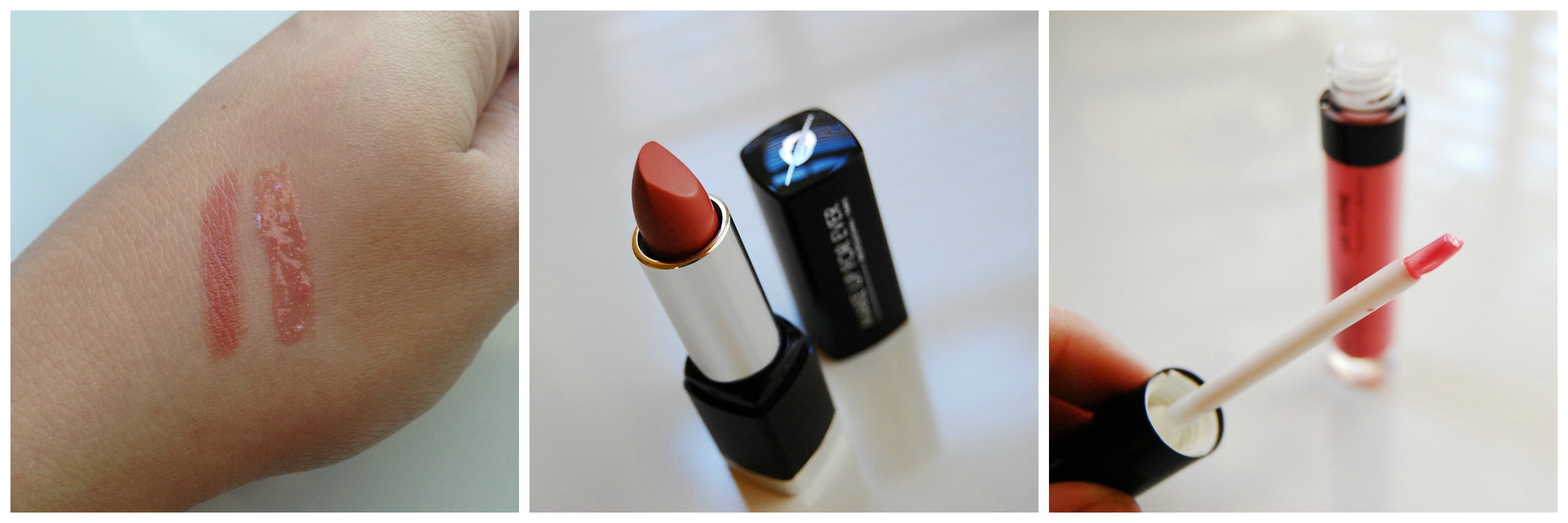 MAKE UP FOR EVER – Rouge Artist Natural lipstick in N4; a Lab Shine lip gloss in D14